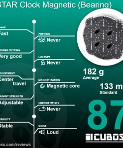 The ESTAR Clock is the first Clock on the market where you have the option to adjust its magnetic strength! The manual describes four different possible layouts, where the medium-strong one is pre-installed in the puzzle. To switch to the weaker layout, you replace the center clock on each side with the ones that come in the box since these have four magnets per center instead of six. If you want to increase the magnetic strength instead, two different layouts are suggested. One is based on adding two of the included extra magnets into the center clock on each side. The other design is based on adding an extra magnet into each edge clock on both sides of the puzzle. Considering that the puzzle comes with ten extra magnets however, it is entirely possible to use your creativity and come up with your own favorite design for the magnetic strength.